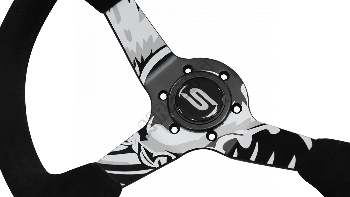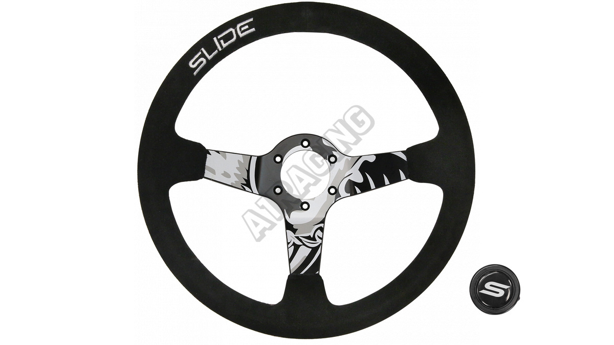 Volant SLIDE je vysoce kvalitní příslušenství určené pro automobilové nadšence, kteří si přejí zlepšit ergonomii, komfort a přesnost řízení svého vozidla. Díky své sportovní konstrukci a estetice se volanty SLIDE dokonale osvědčí ve vozidlech připravených na jízdu na okruhu. Tato verze volantu se vyznačuje výjimečným provedením z semiše a střední část je ozdobena hydro-grafickým vzorem, což jí dodává unikátní charakter. Semiš zajišťuje pevný úchop a hydro-grafický vzor ve střední části nejen přitahuje pozornost, ale také dodává volantu originální vzhled.