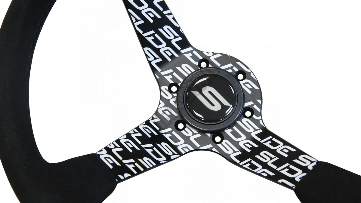 Volant SLIDE je vysoce kvalitní příslušenství určené pro automobilové nadšence, kteří chtějí zlepšit ergonomii, komfort a přesnost řízení svého vozidla. Díky své sportovní konstrukci a estetice se volanty SLIDE dokonale osvědčí ve vozidlech připravených na jízdu na okruhu. Tato verze volantu se vyznačuje výjimečným provedením ze semiše a střední část je ozdobena hydro-grafickým vzorem, což jí dodává unikátní charakter, stříbrný pruh na obruči usnadňuje přesné určení centrální polohy volantu, což zvyšuje kontrolu nad vozidlem. Semiš zajišťuje pevný úchop a hydro-grafický vzor ve střední části nejen přitahuje pozornost, ale také dodává volantu originální vzhled.