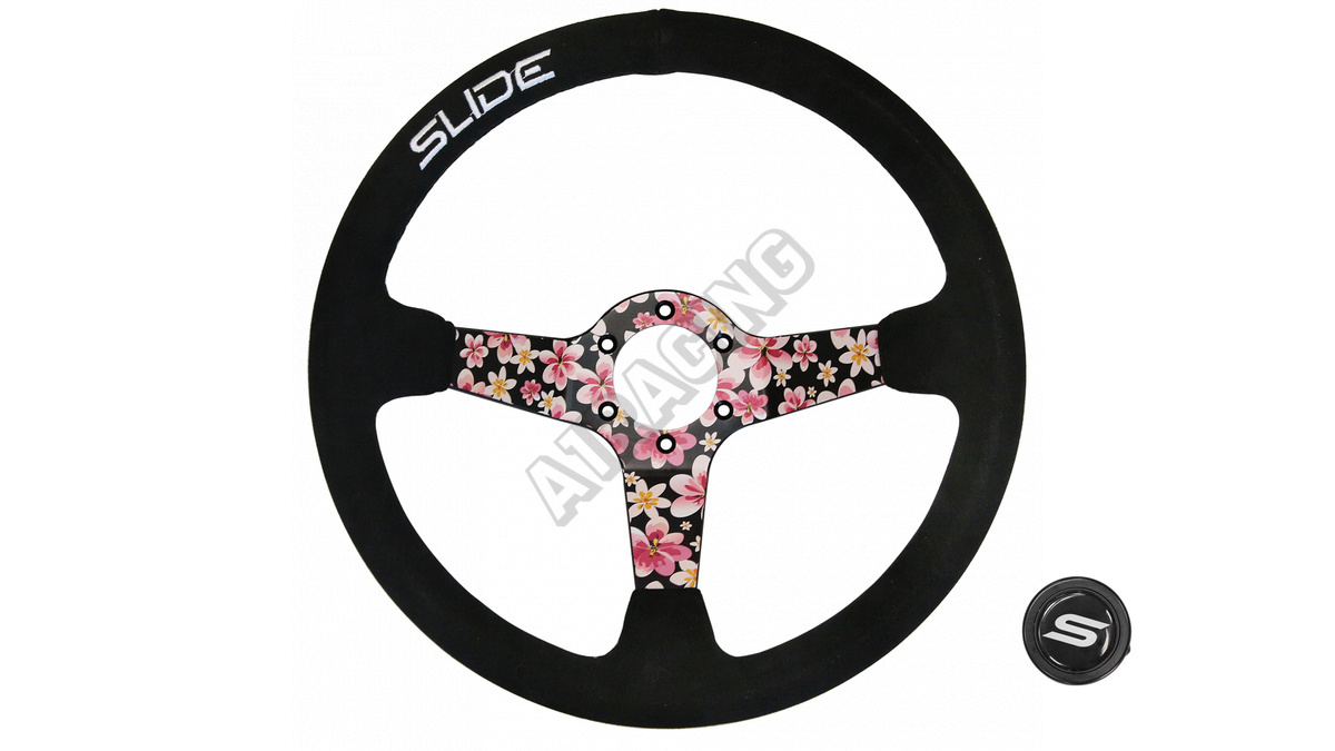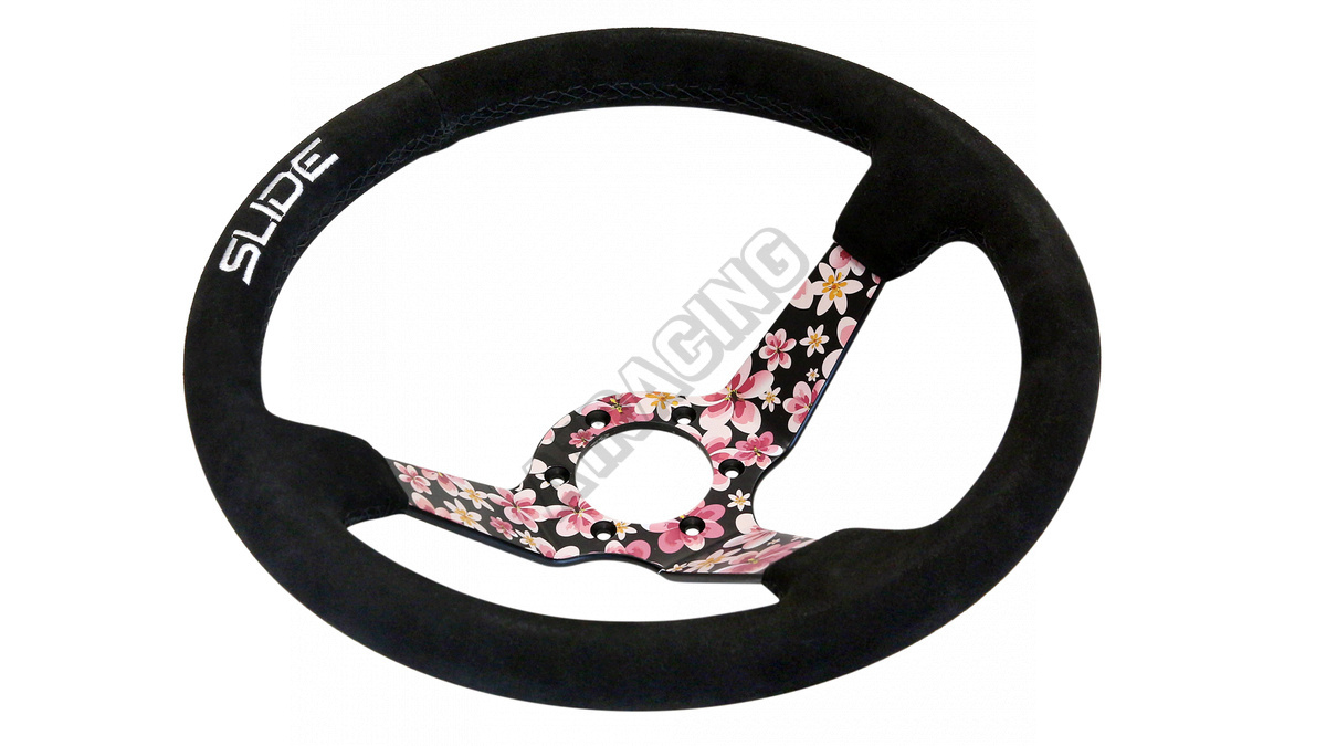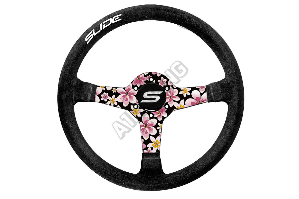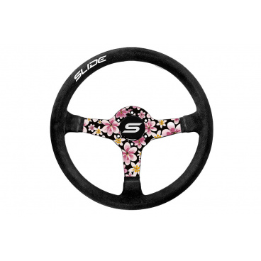 Volant SLIDE je vysoce kvalitní příslušenství určené pro automobilové nadšence, kteří chtějí zlepšit ergonomii, pohodlí a přesnost řízení svého vozidla. Díky své sportovní konstrukci a estetice se volanty SLIDE dokonale osvědčí ve vozidlech připravených na jízdu na okruhu. Tato verze volantu se vyznačuje výjimečným provedením ze semiše a střední část je ozdobena hydro-grafickým vzorem, což jí dodává jedinečný charakter. Semiš zajišťuje pevný úchop a hydro-grafický vzor ve střední části nejen přitahuje pozornost, ale také dodává volantu originální vzhled.