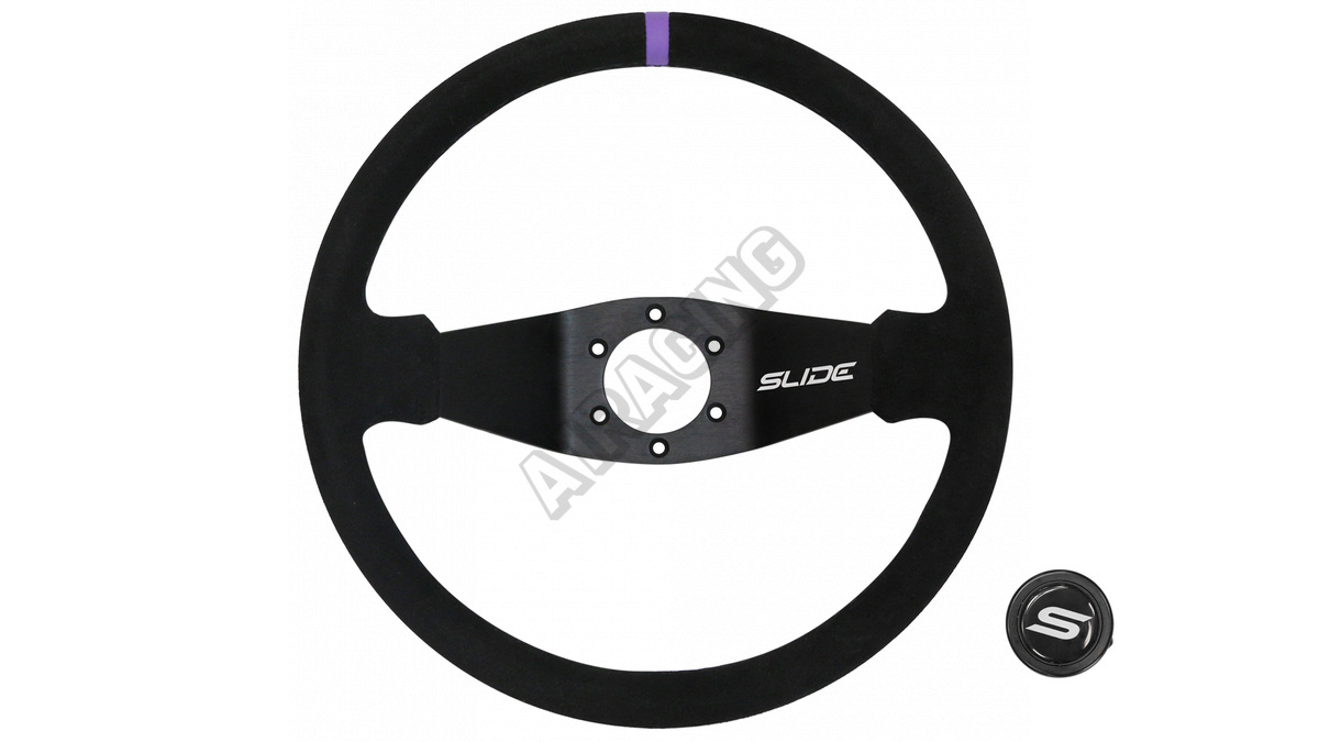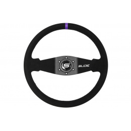 Volant SLIDE je vysoce kvalitní příslušenství určené pro automobilové nadšence, kteří chtějí zlepšit ergonomii, pohodlí a přesnost řízení svého vozidla. Díky své sportovní konstrukci a estetice se volanty SLIDE dokonale osvědčí ve vozidlech připravených na jízdu na okruhu. Tato verze volantu se vyznačuje výjimečným provedením ze semiše, což zajišťuje pevný úchop a pohodlí při používání. Navíc, fialový pruh na obruči nejen dodává sportovní charakter, ale také pomáhá přesně určit centrální polohu volantu, čímž zvyšuje kontrolu nad vozidlem. Na rozdíl od tradičních tříramenných volantů má SLIDE unikátní dvouramennou konstrukci, což zajišťuje více minimalistický a ergonomický design, zlepšující komfort a přesnost řízení.