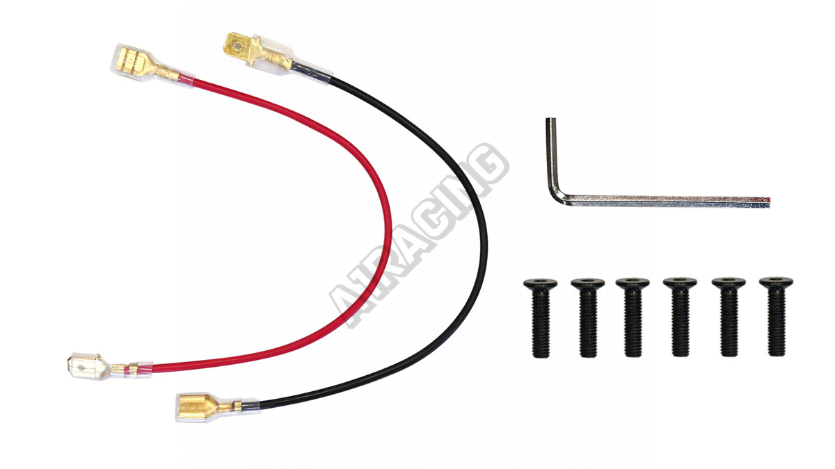 V sadě klakson, montážní šrouby, kabely pro připojení klaksonu a nálepka na klakson s logem výrobce.
