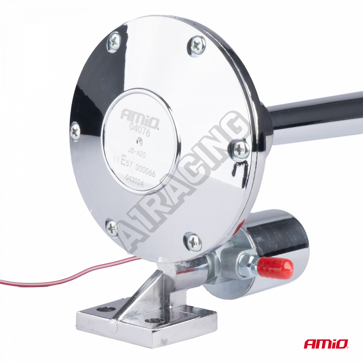Klakson fanfára 12-24V o impozantní délce 640 mm a elegantním chromovaném provedení je ideální volbou pro každého, kdo se chce na silnici odlišit. Jeho silný zvuk a stylový vzhled z něj činí vynikající doplněk pro osobní automobily, nákladní vozy, motocykly a další vozidla.
