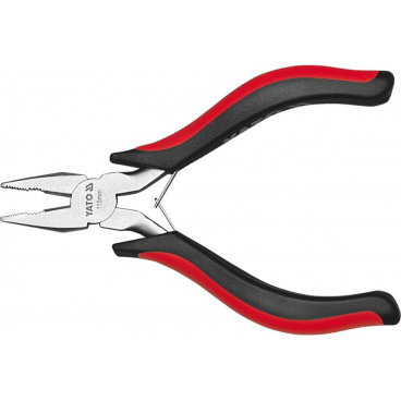Mini kleště kombinačky délka 115 mm. Kvalitní univerzální malé kleště pro přesné montážní práce a jemnou mechaniku. • celková délka 115 mm • ozubené čelisti, pro uchopení plochých i kulatých profilů, délka 20 mm • rukojeti potažené vícesložkovým měkčeným TPR plastem • kvalitní uhlíková ocel, niklovaný leštěný povrch