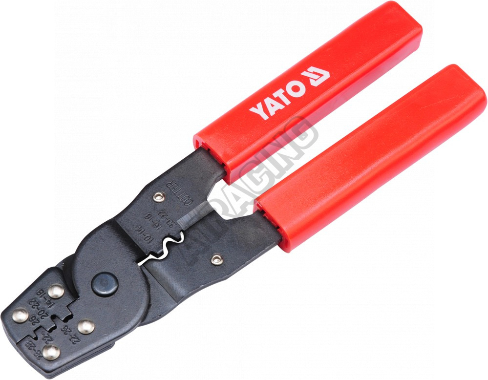 Kleště YT-2256 pro krimpování tří typů konektorů, se zčernalým povrchem, který chrání před korozí, a s plastovými kryty rukojetí.