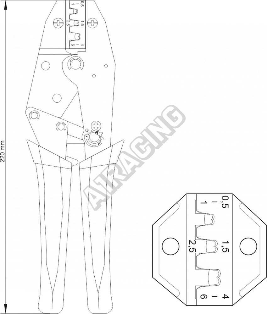 Kleště konektorové 230mm, 20-18(AWG), 0,5-6,00mm2