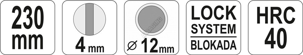 Zhotovení z kvalitní oceli s tvrdostí 40 HRC, délka kleští 230 mm.