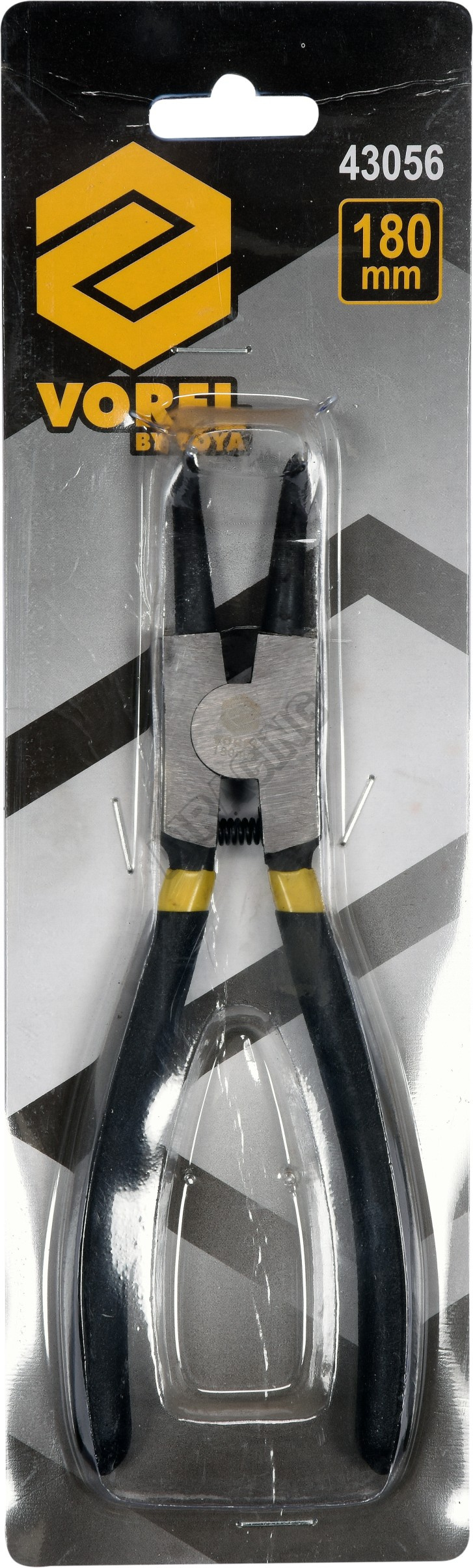 Ségr kleště VOREL 43056 vnější zahnuté v úhlu 90° délka 180 mm na pojistné kroužky vně na hřídeli průměr 19 - 60 mm.