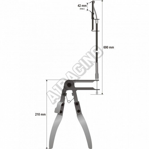 Výrobek je navržený pro manipulaci v těžko přístupných místech. Kleště délky 210 mm, jsou opatřeny bowdenem délky 690 mm a čelistmi s minimálními rozměry, umožňujícími pracovat i ve špatně dostupných prostorech. Rozsah čelistí je 0 - 42 mm.