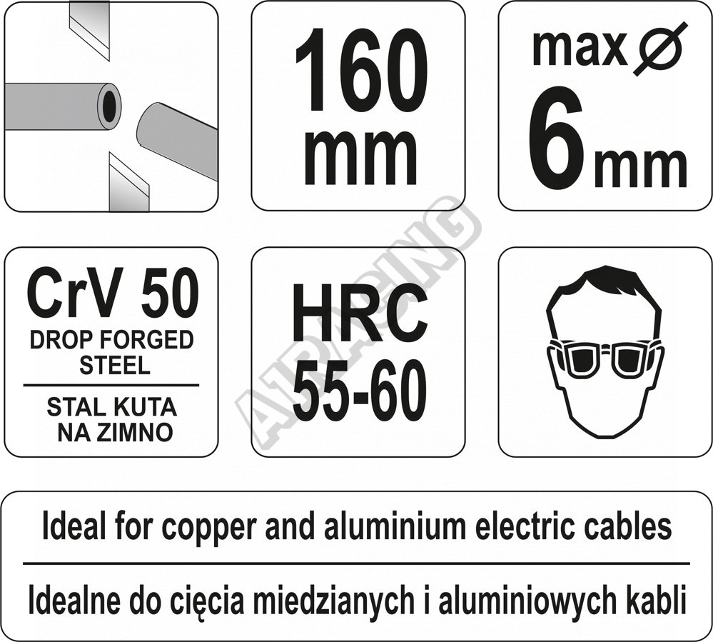 Vhodné pro stříhání Al a Cu vodičů do průměru 6 mm.