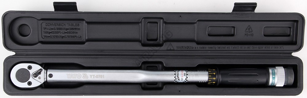 Momentový klíč Yato s rozsahem 40 - 210 Nm se zakončením 1/2". Samotné nastavení momentu, se provádí