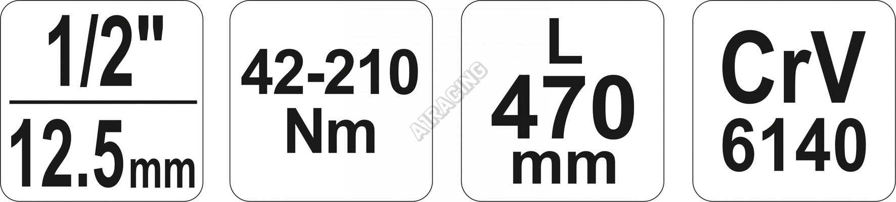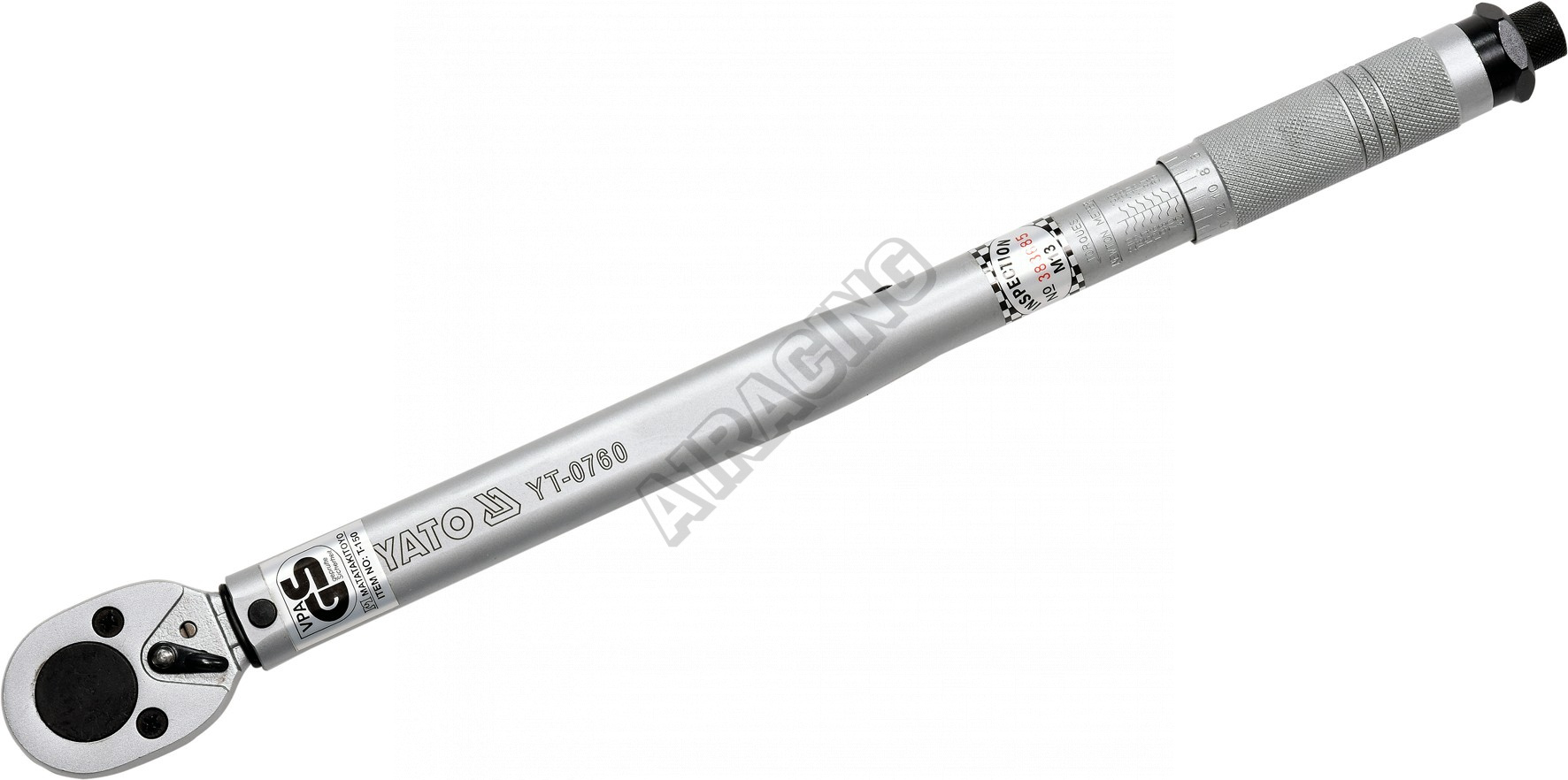 Momentový klíč Yato s rozsahem 42 - 210 Nm se zakončením 1/2". Samotné nastavení momentu, se provádí