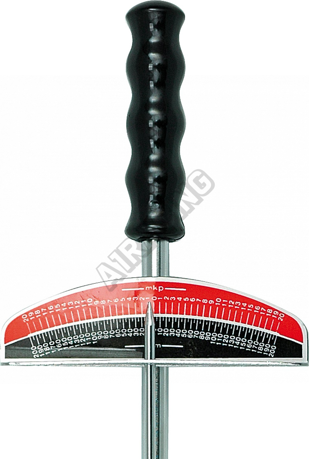 Utahovací moment, se dá odečíst, podle vychýlení utahovacího ramene vůči stupnici, která měří momenty od 0-200 Nm.
