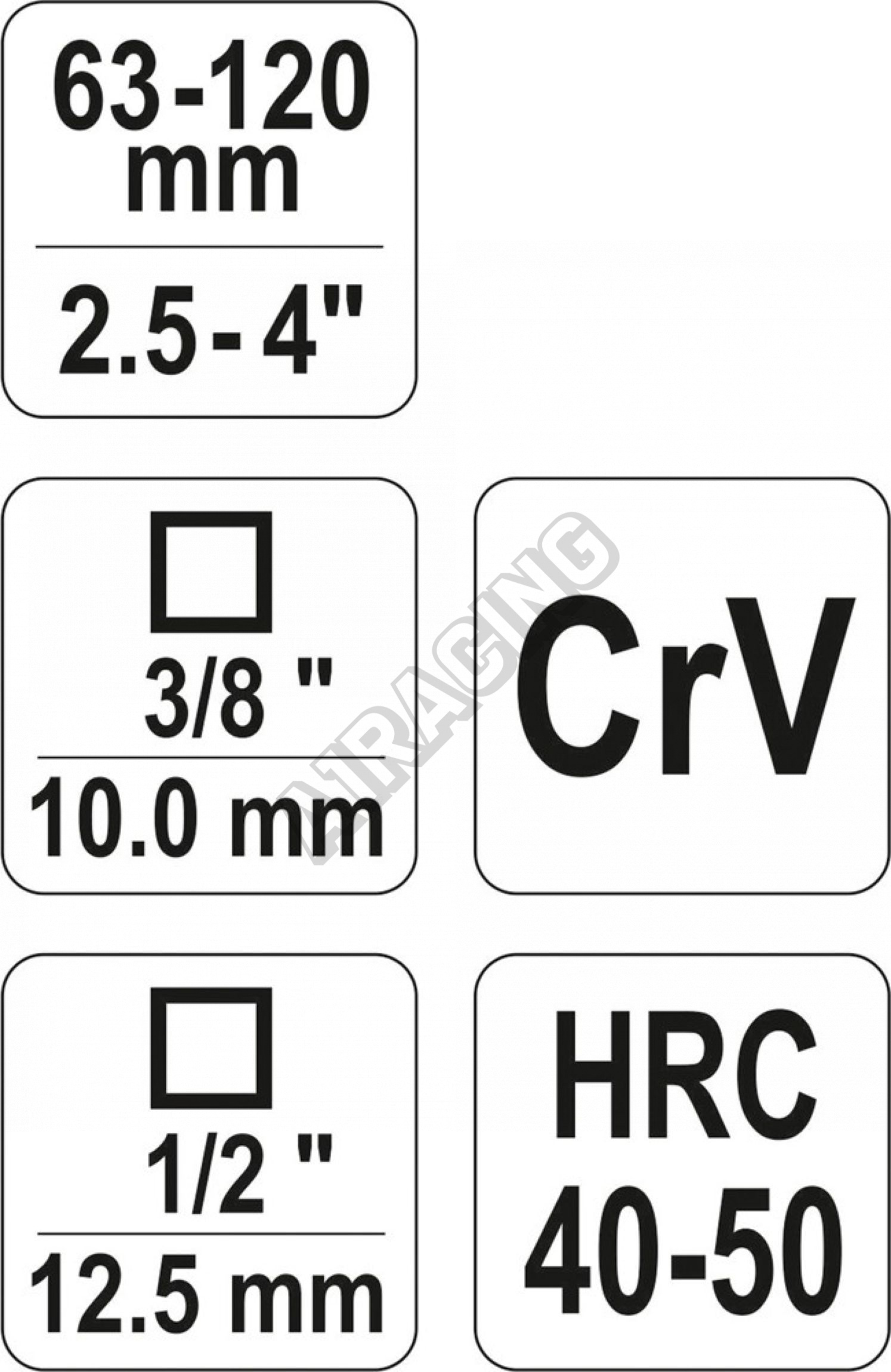 Klíč je zhotoven z CrV oceli s pevností 40-50 HRC. Pro povolování a utahování se využije zakončení 1/2", nebo 3/8".