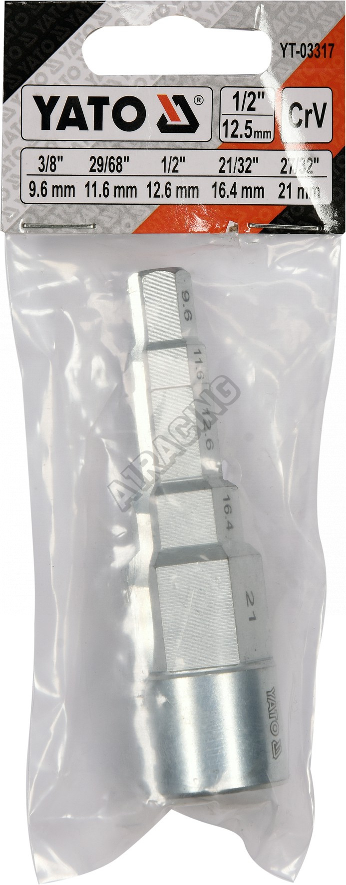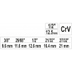 Klíč na radiátorové šroubení je univerzální klíč pro montáž a demontáž radiátorových dílů s uchycením pro 1/2" ráčnu. Velikosti stupňovitých klíčů 3/8" (9,6 mm) / 29/68" (11,6 mm) / 1/2" (12,6 mm) / 21/32" (16,4 mm) / 27 / 32 "(21 mm) s 1/ 2" pohon vyrobený z vysoce kvalitní oceli CRV.