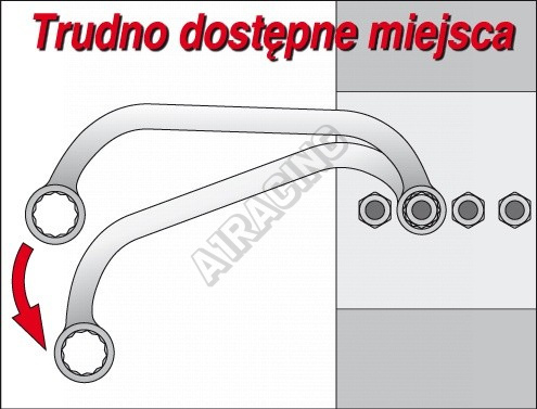 Očkový obloukový klíč typu "C" vyrobený z kvalitní chromvanadiové slitiny oceli (CrV 6140). Povrch je částečně satinovaný a leštěný do vysokého lesku.