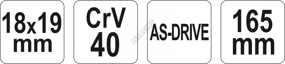 Klíč trubkový oboustranný,velikost 18x19mm, systém AS-Drive, vyrobený z kvalitní chromvanadiové slitiny oceli CrV 40.