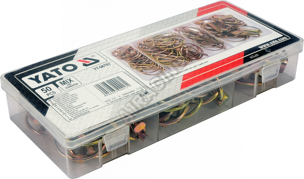 Sada 50 ks kvalitních pojistných kolíků. Vše je přehledně uspořádáno v kompaktním plastovém kufříku.