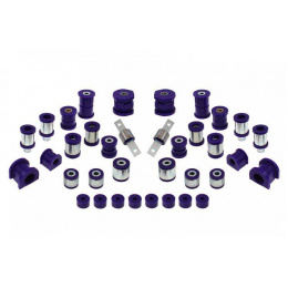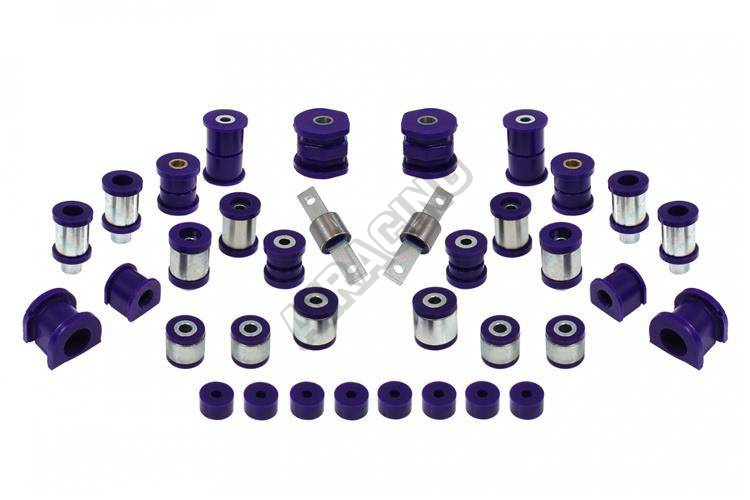 W skład kompletu wchodzą: Tuleje wahaczy przednich, tuleje wahaczy tylnych ,tuleje stabilizatorów przednich /wersja japońska/ , łączników, tuleje amortyzatorów.