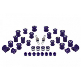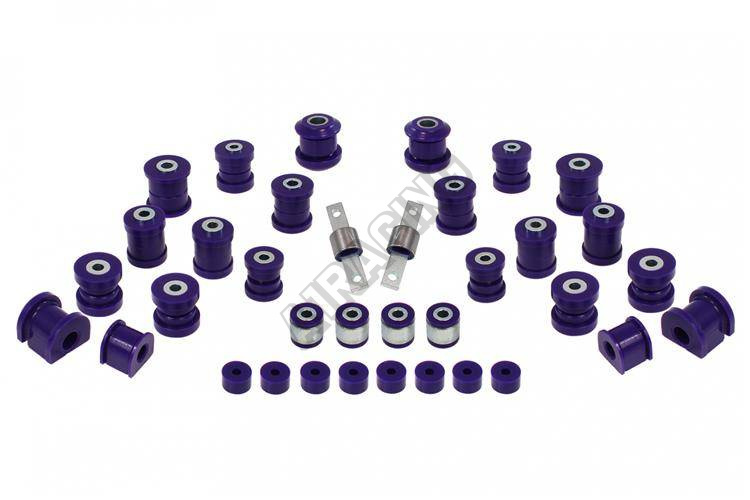 W skład kompletu wchodzą: Tuleje wahaczy przednich, tuleje wahaczy tylnych ,tuleje stabilizatorów przednich i tylnych , łączników, tuleje amortyzatorów.
