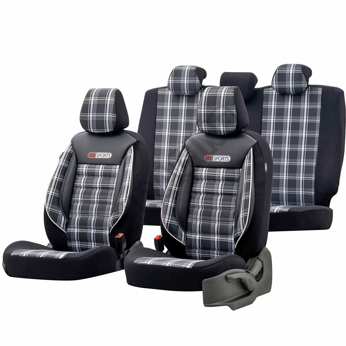 Potahy mají zámky na zadním sedadle, díky čemuž pasují na většinu sedadel dostupných na trhu (nedělené pohovky, dělené vpravo i vlevo).