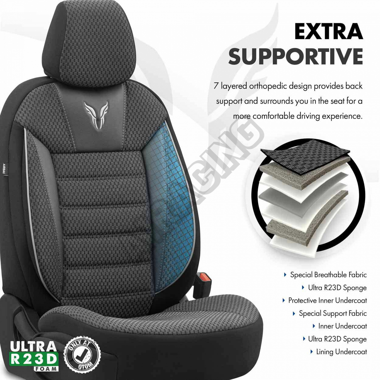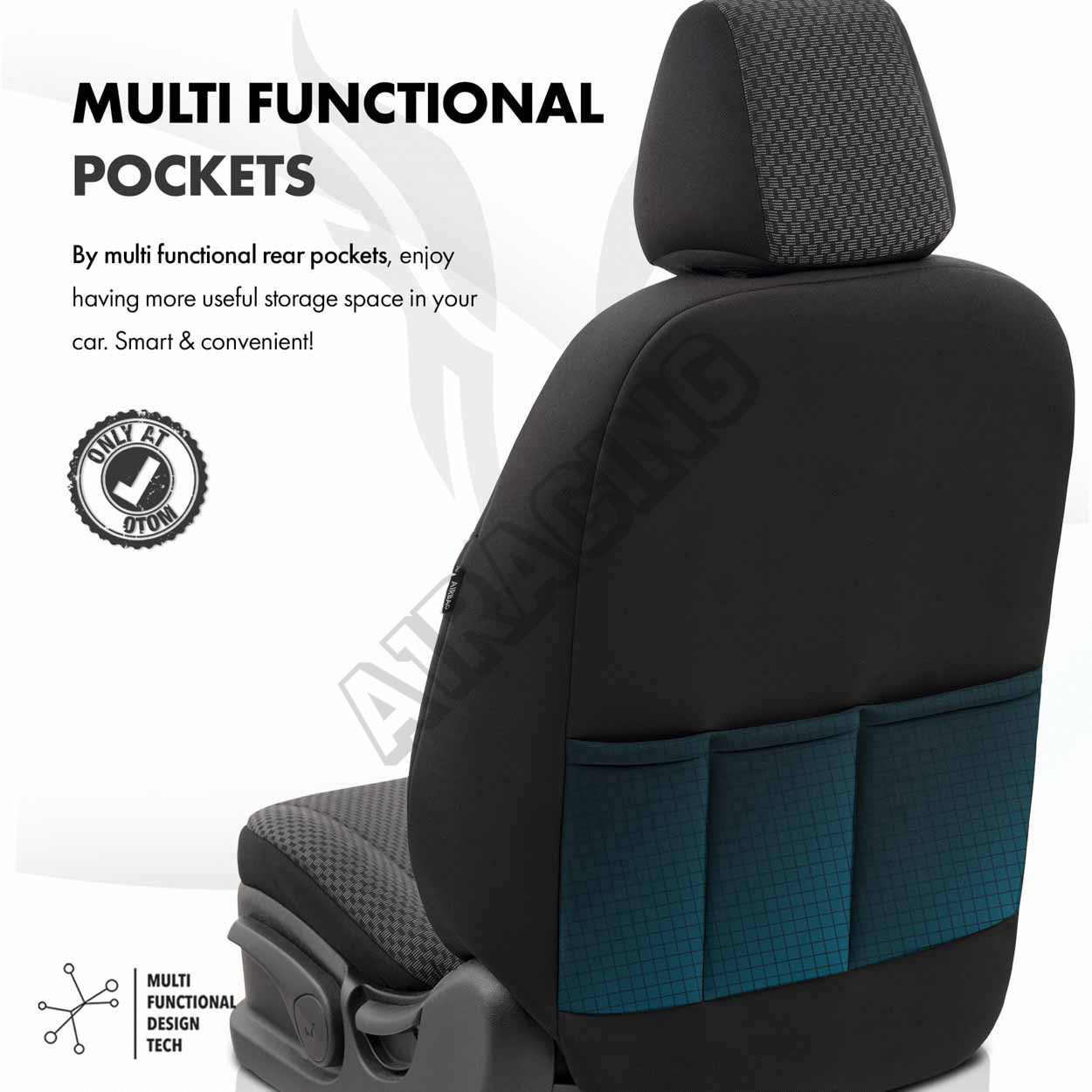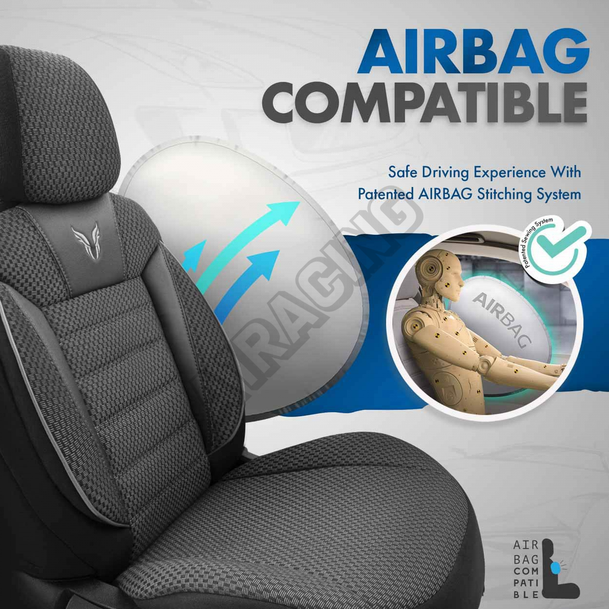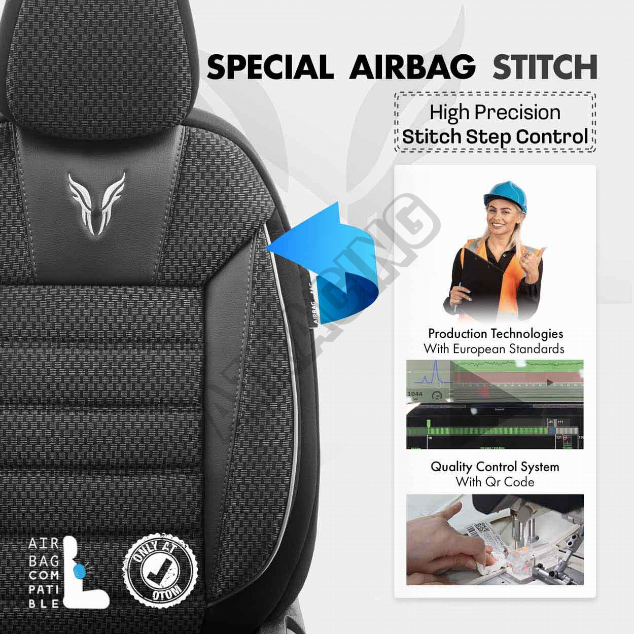 Potahy ve standardu mají certifikovaný šev AIRBAG, díky čemuž jsou přizpůsobeny pro automobily jak s bočními airbagy v sedadlech, tak i pro standardní sedadla. Díky použití speciálního švu, zakrývají sedadla vcelku, aniž by narušovaly funkci AIRBAGů.