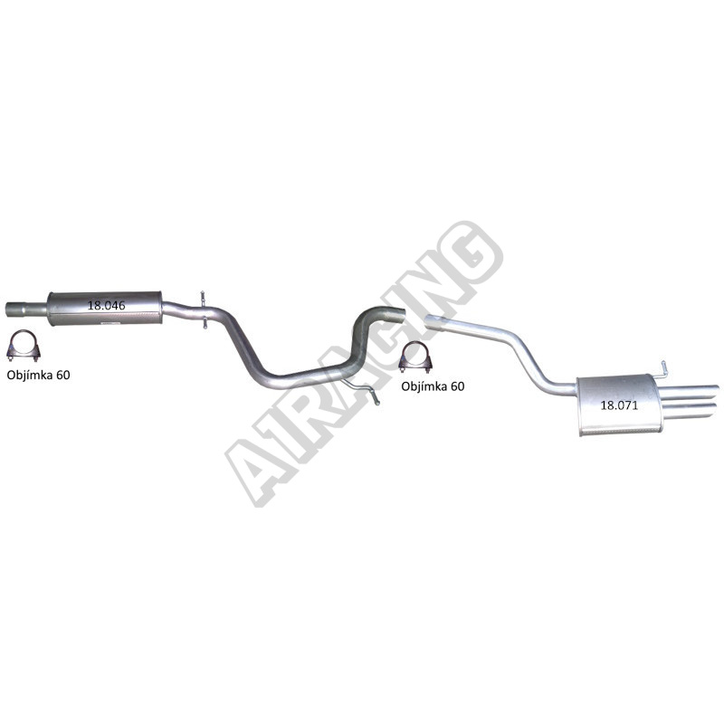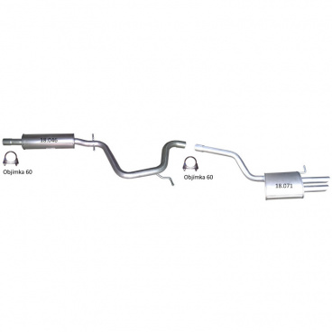 Kompletní výfuk Škoda Octavia II 1.9TDi 77kW a 2.0TDi 81,100,103kW + montážní sada Obsah balení: 1