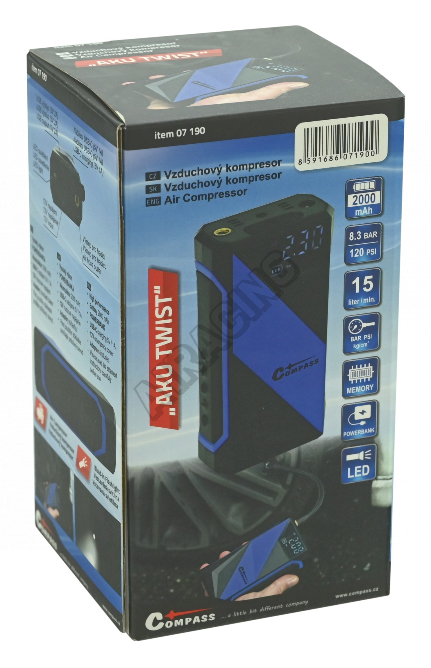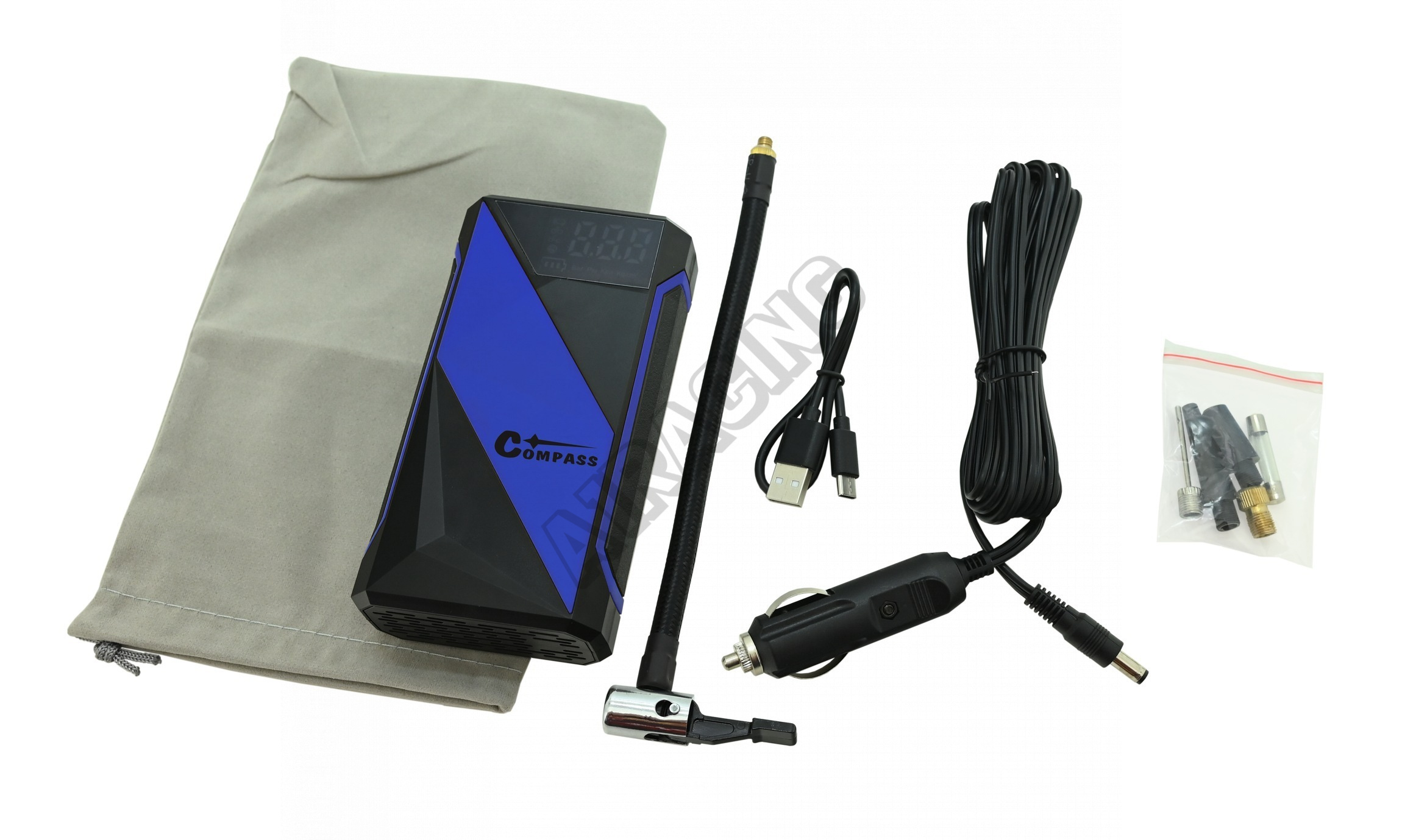 Kompresor je vhodný k huštění pneumatik osobních automobilů, motocyklů, jízdních kol, míčů a dalších nafukovacích výrobků. Adaptéry jsou součástí balení.
