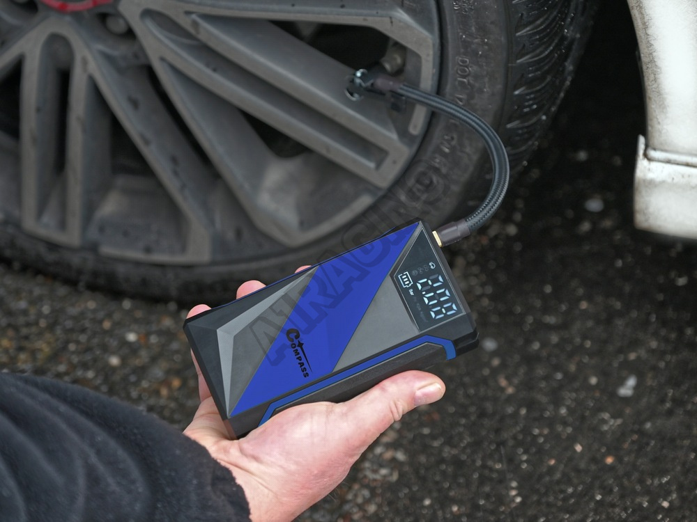 Kompresor je vybaven funkcí pro automatické nahuštění na předem nastavený tlak. Displej přehledně zobrazuje přednastavené hodnoty, i aktuální tlak huštěného předmětu v několika různých jednotkách.