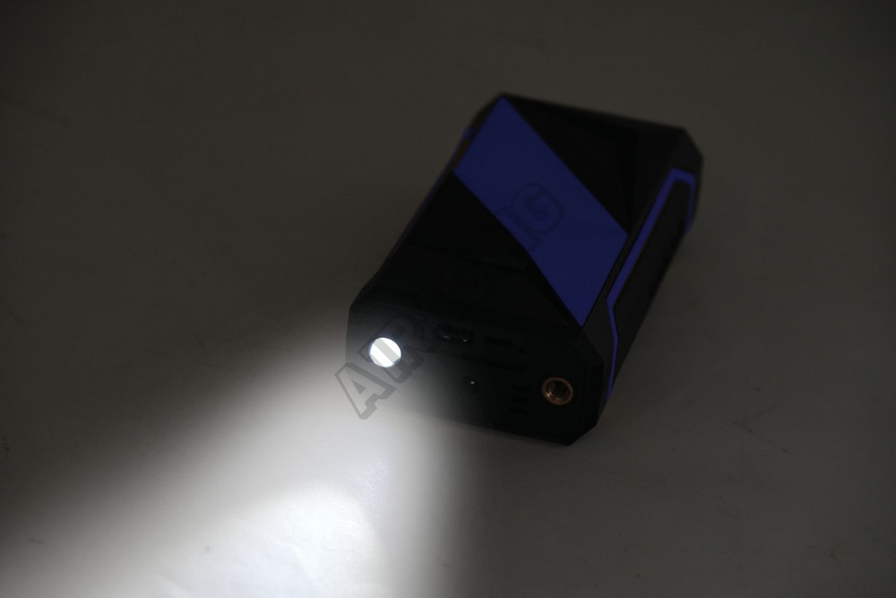 Kompresor je možné používat i jako Powerbanku pro napájení USB zařízení. Čelní strana je navíc opatřena vestavěnou LED svítilnou pro osvětlení pracovního prostoru.