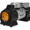Výkonný kompresor s přesným manometrem a napájením na 12V. Určeno pro nafukování pneumatik vybavených ventilem v automobilech, motocyklech a jízdních kolech a - s použitím výměnných špiček - matrace, pontony, míče.