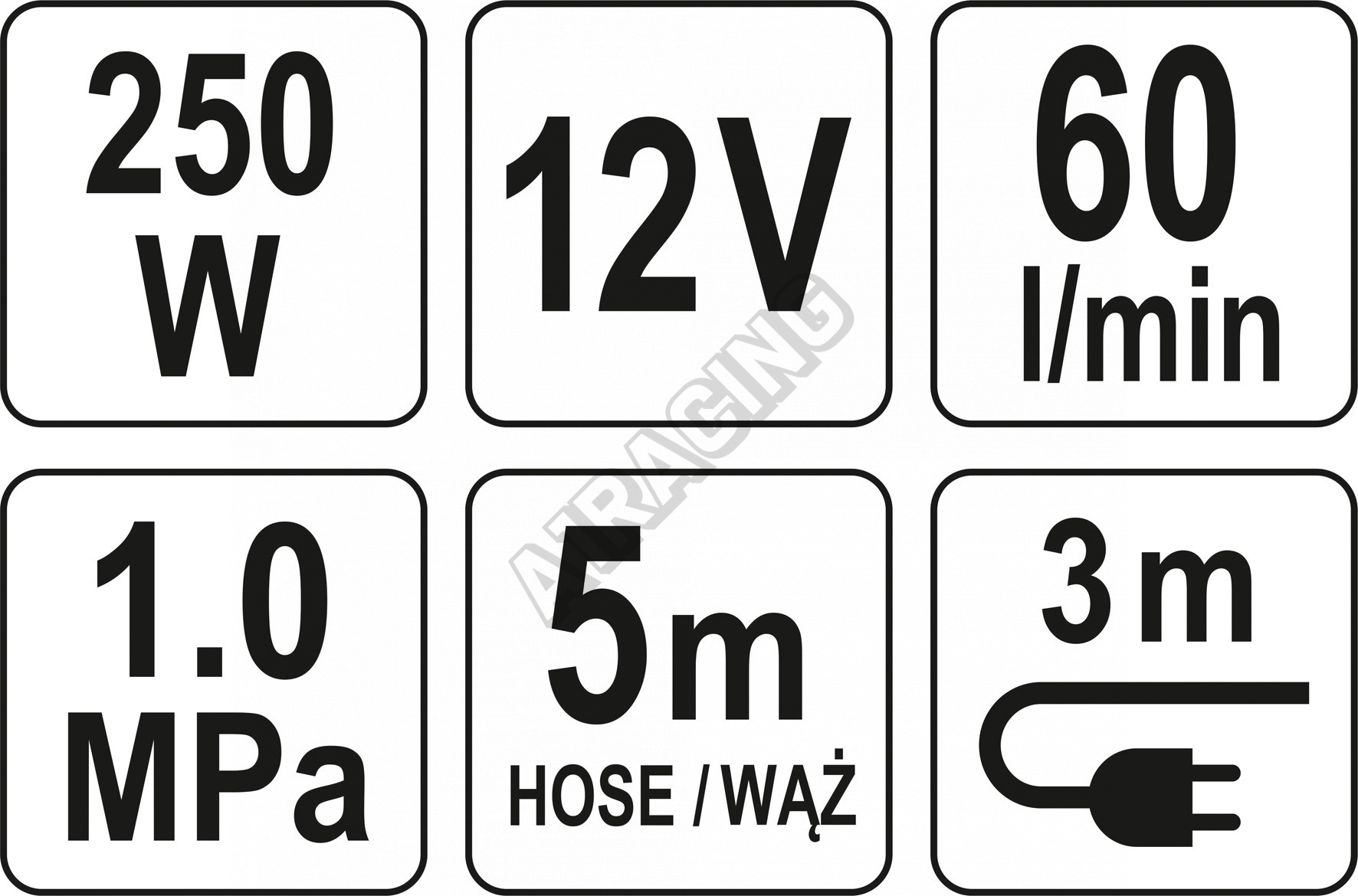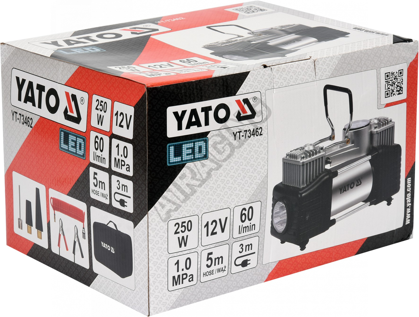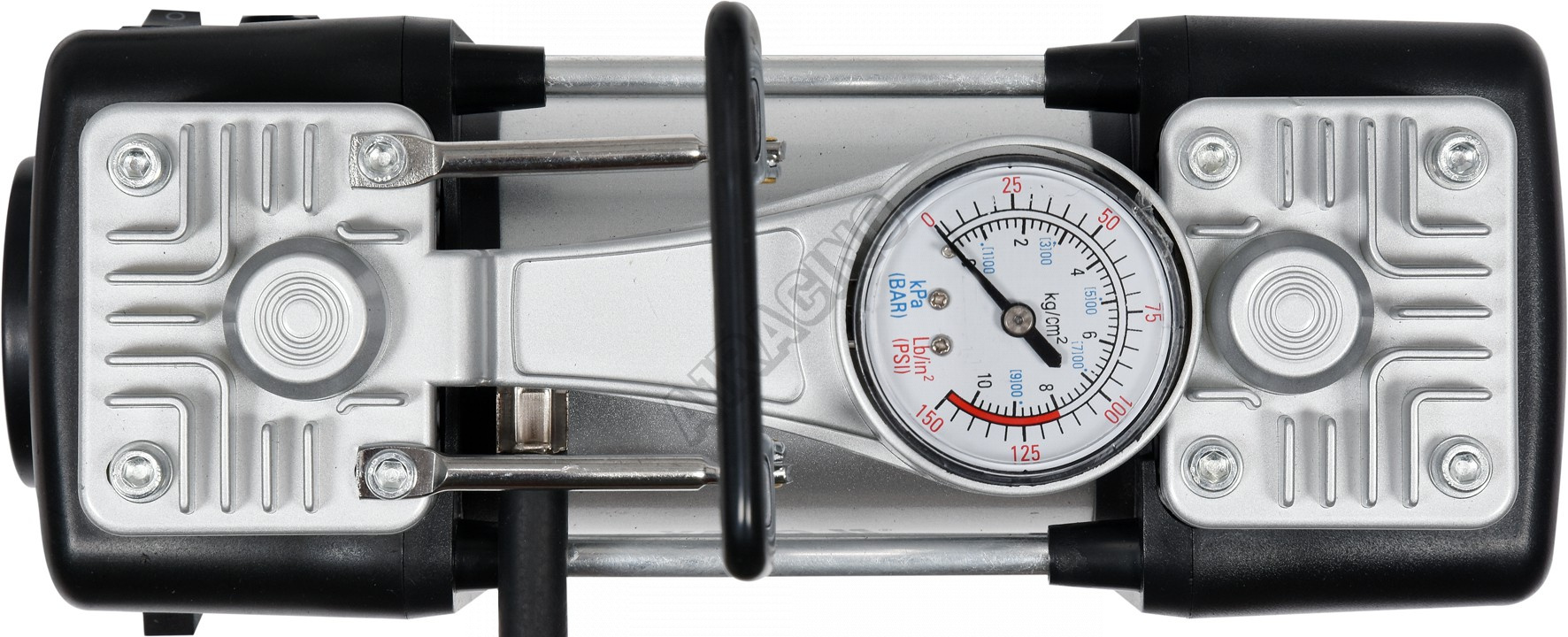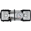 Výkonný kompresor s přesným manometrem a napájením na 12V - 13,8V. Určeno pro nafukování kol vybavených ventilem v automobilech, motocyklech a jízdních kolech a - s použitím výměnných špiček - matrace, pontony, míče.