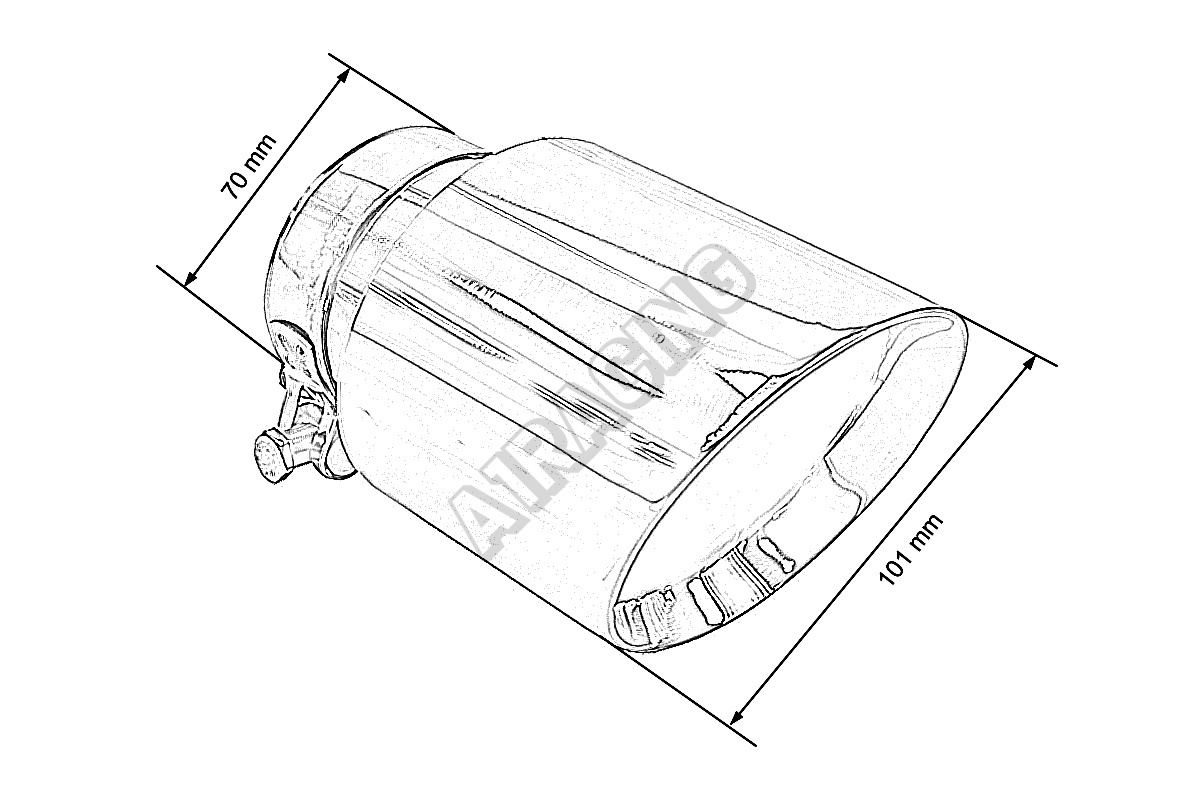 Koncovka tlumiče s leštěným povrchem. Koncovka výfuku z nerezové oceli (304SS). Upínací objímka na v