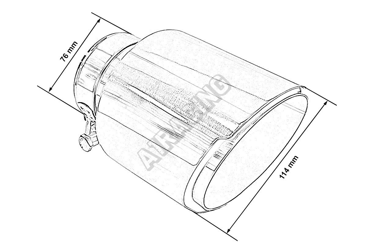 Koncovka tlumiče s leštěným povrchem. Koncovka výfuku z nerezové oceli (304SS). Upínací objímka na v