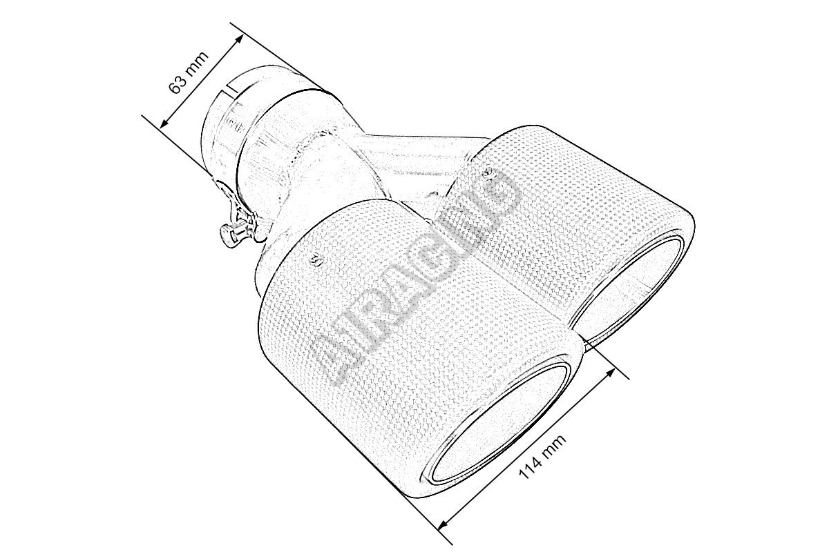 Koncovka tlumiče 114mmx2 vstup 63mm Carbon Mat Pravá