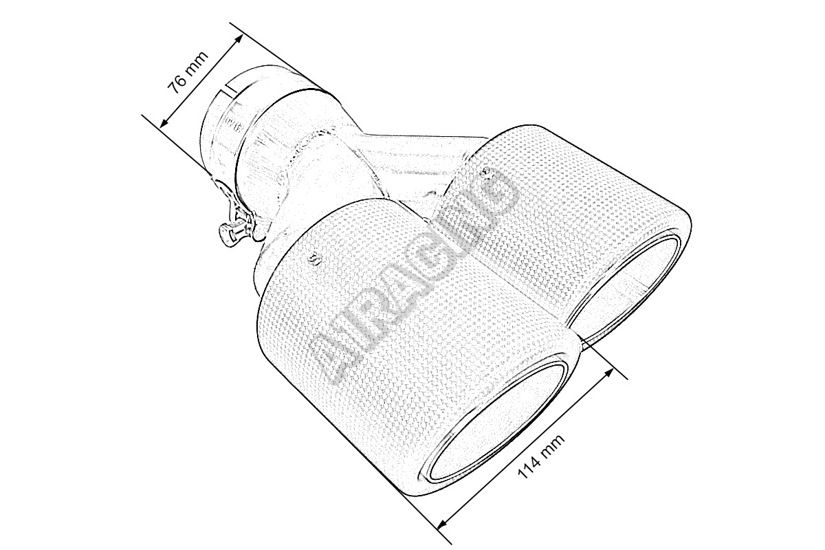 Koncovka tlumiče 114mmx2 vstup 76mm Carbon Mat Pravá