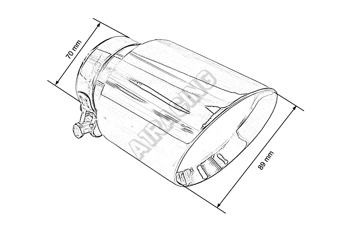 Koncovka tlumiče s leštěným povrchem. Koncovka výfuku z nerezové oceli (304SS). Upínací objímka na v