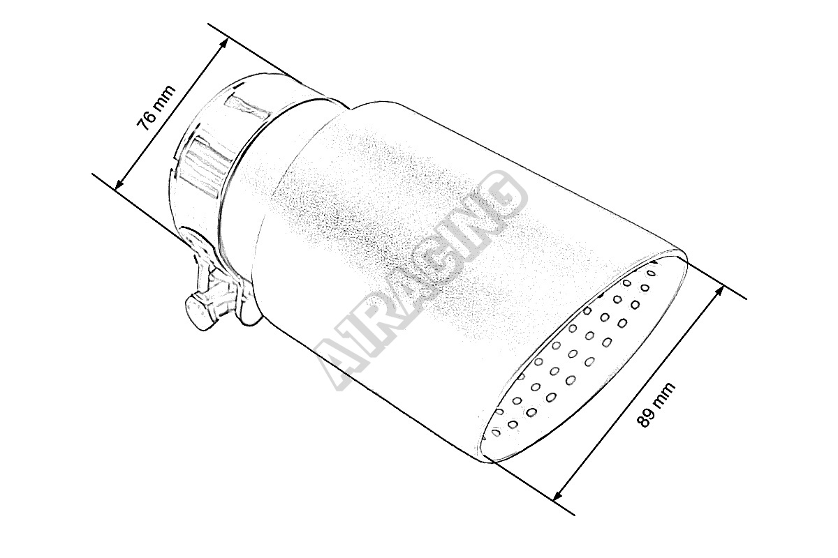 Koncovka výfuku z nerezové oceli (304SS).Upínací objímka na vstupu umožňuje snadnou instalaci, bez nutnosti vrtání nebo svařování.