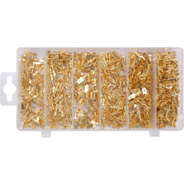 Konektory jsou vyrobeny z mosazi a jsou přehledně uloženy v plastovém boxu.