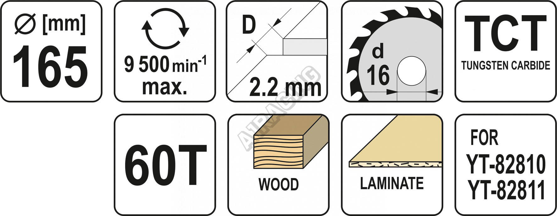 Kotouč na dřevo TCT 165 x 16 mm 60z (pro YT-82810, YT-82811)