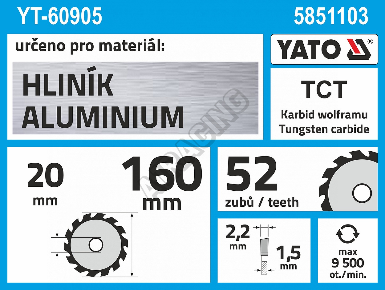 Kotouč na hliník 160 x 20 mm 52z275 Kč