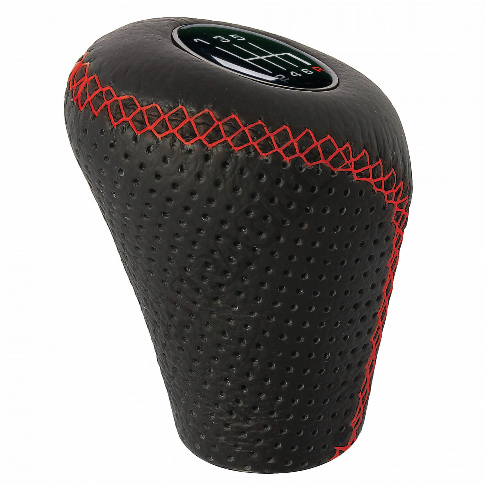 Recenze k produktu Kožená hlavice řadící páky černá/červené prošití (s přizvedáváním táhla pod řazení)