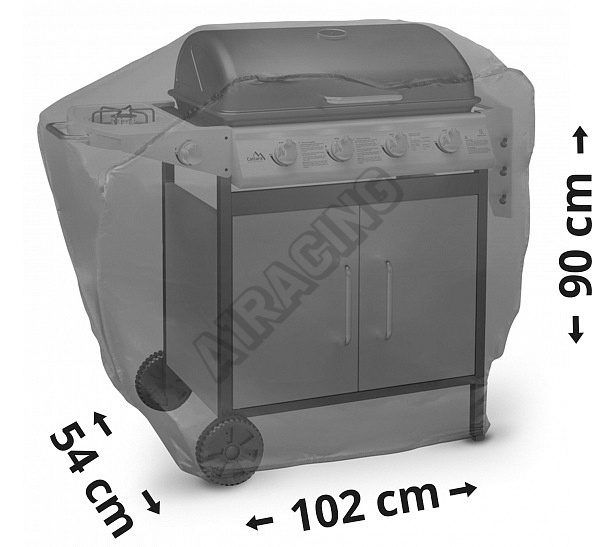 Kryt je přesně navržen pro plynové grily 99BB004, 99BB013 a gril 13044 ale lze jej využít i pro grill zcela jiný, do rozměrů (švh) 102 x 90 x 54 cm.