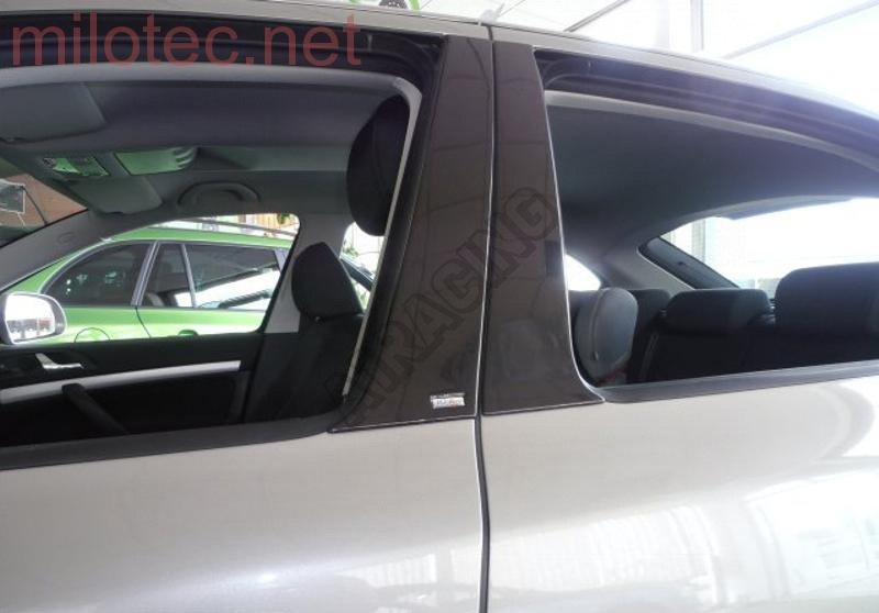 Šestidílná sada krytů bočních sloupků B a C je vyrobena z ABS černá metalíza. Kryty sloupků svým tmavým lesklým designem vozidlo opticky sníží a prodlouží (boční okna předních a zadních dveří se vizuálně spojí v jeden celek).