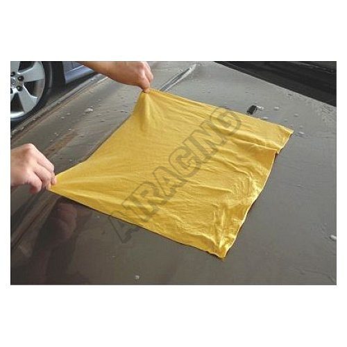 Syntetická kůže na mytí, nezanechává šmouhy a výtečně saje vodu. Určeno k čištění skel, zrcátek, na lakované, chromované a plastové části, k osušení kapek vody. Po použití vymáchejte ve vlažné vodě, nechte vykapat a volně uschnout.