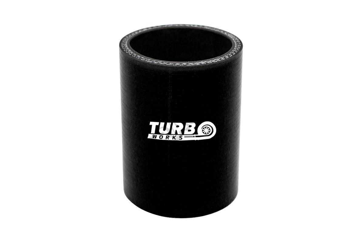 Łącznik silikonowy firmy TurboWorks Zastosowanie: układ dolotowy, układ chłodzenia. Element zbrojony 4-ro krotnym oplotem, o grubości ścianek 5mm, testowany do 7 barów oraz w zakresie temperatur od -50 do +260°C. Wykonany z najwyższej jakości silikonu, odporny na działanie wszelkiego rodzaju płynów chłodniczych, smarów i oparów oleju.