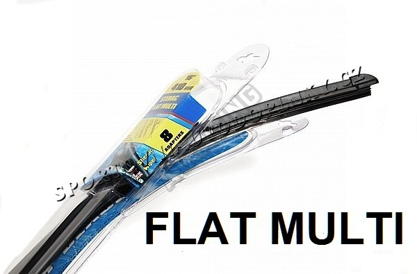 Stěrač FLAT MULTI má speciální uchycení, díky kterému lze pomocí přiložených adaptérů použít tento stěrač pro řadu různých zakončení ramen stěračů. Balení á 1 ks ve speciálním "otevíracím" blisteru. Tento typ plochého stěrače je osazen gumičkou s černým grafitem, umožňuje i její výměnu.