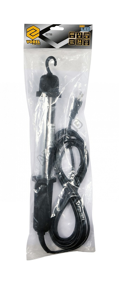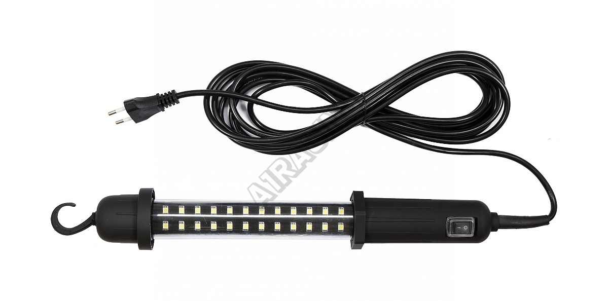 Délka kabelu 5 m je dostatečně dlouhá pro potřebnou manipulaci se svítilnou. V horní části je lampa vybavena háčkem pro snadné zavěšení.