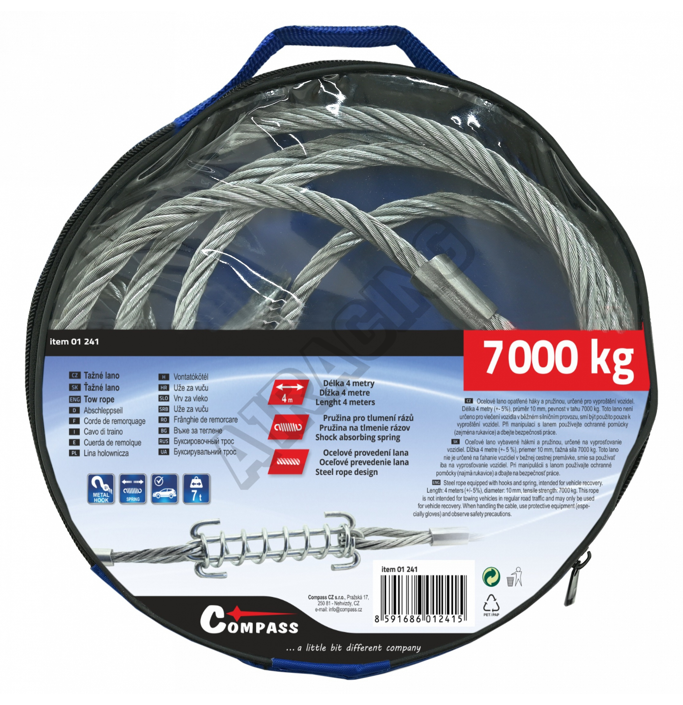 S délkou 4 metry (+/- 5 %), průměrem 10 mm a pevností v tahu 7 000 kg se jedná o robustní nástroj, který je ideálním doplňkem pro každého řidiče. Integrovaná pružina efektivně tlumí náhlé rázy vznikající při vyprošťování vozidla.