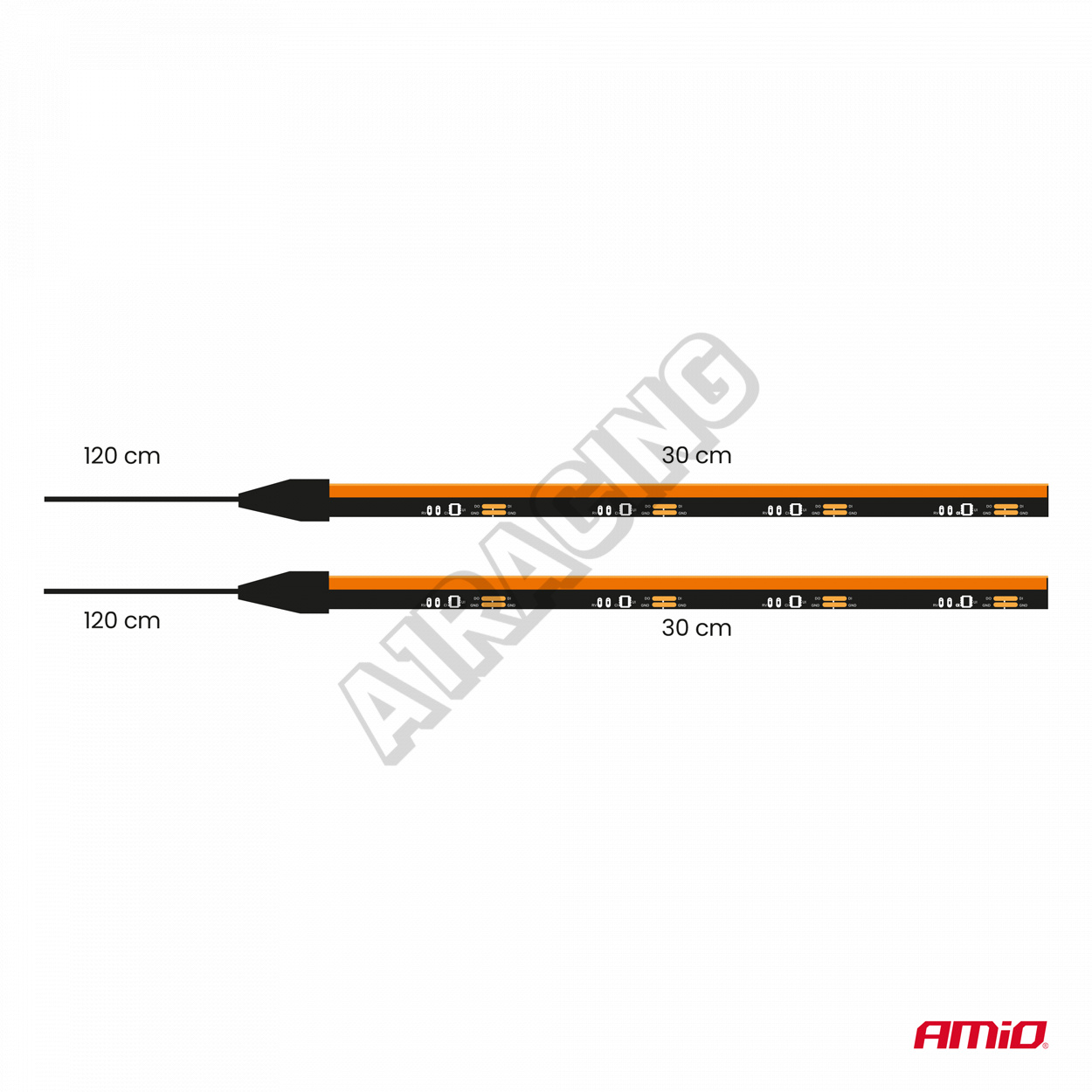 LED COB pásky do auta boční oranžové 2x30cm 12V AMIO-04574