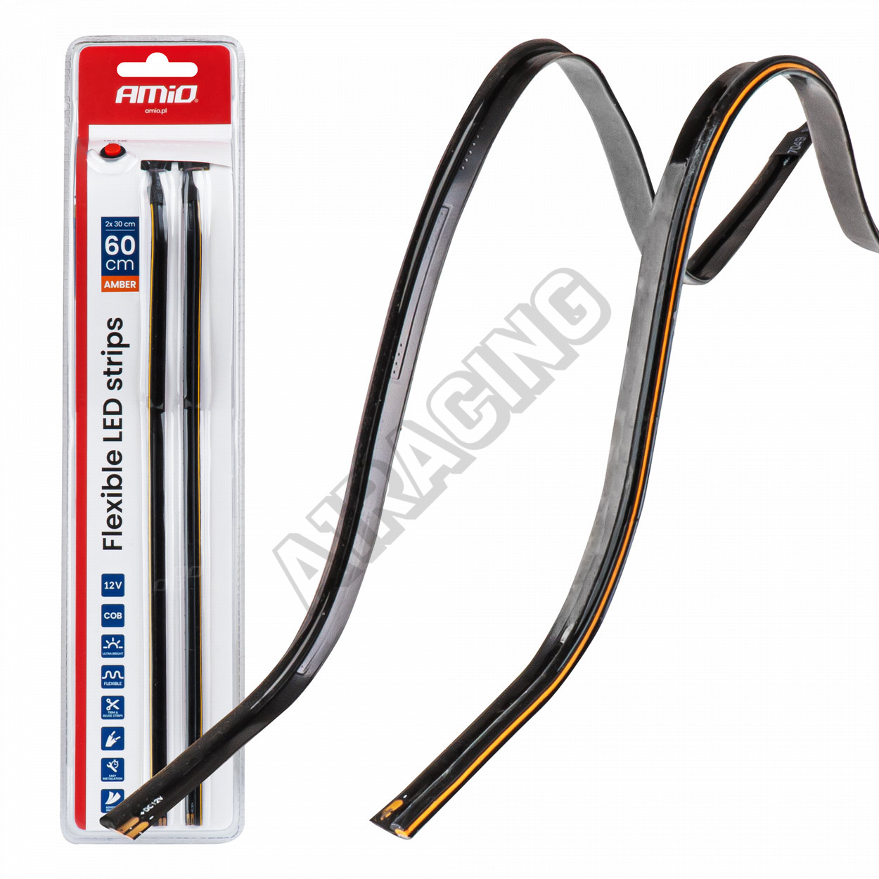Flexibilní LED pásky určené pro boční montáž ve vozidlech s instalací 12V. Sada obsahuje dva pásky o délce 30 cm, vyzařující intenzivní jantarové světlo (Amber). Díky konstrukci Flexible se snadno přizpůsobí montážnímu povrchu. Produkt má funkci "vyzkoušej mě", která umožňuje předvést jeho fungování na prodejním místě.